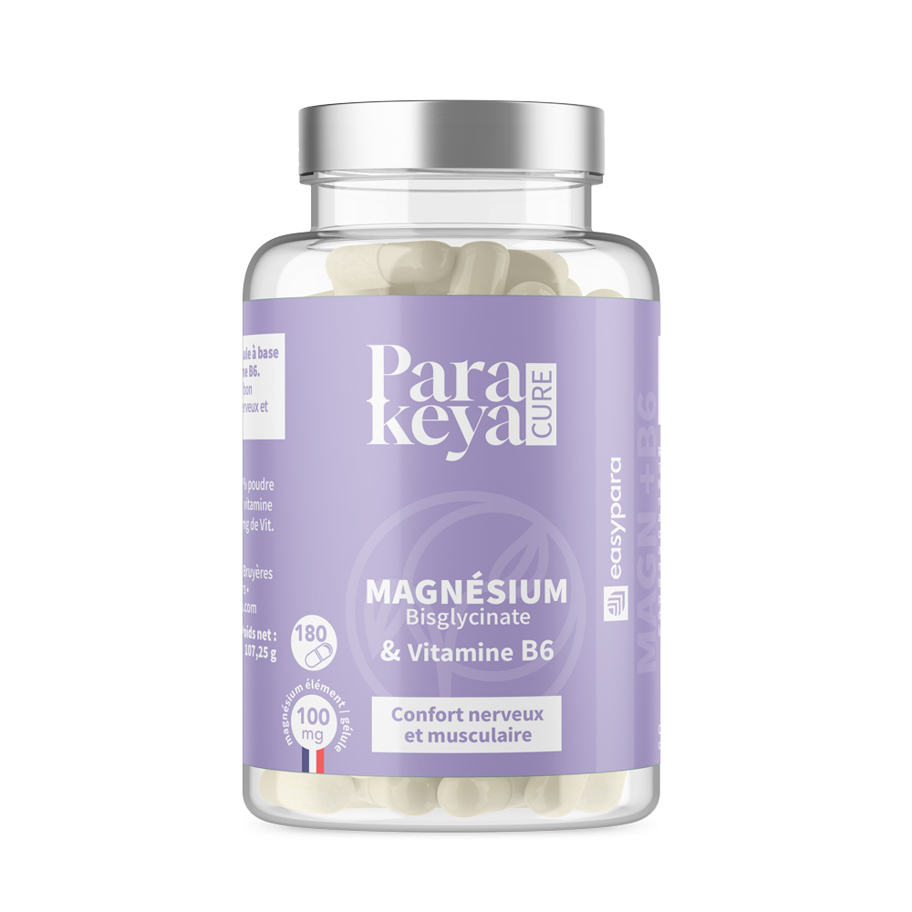 Le magnésium bisglycinate est une forme chélatée reconnue pour sa bonne assimilation par l’organisme. Associé à la vitamine B6, il s’intègre parfaitement dans une supplémentation destinée à soutenir l’équilibre nerveux et la fonction musculaire, au quotidien comme lors de périodes de sollicitation accrue.