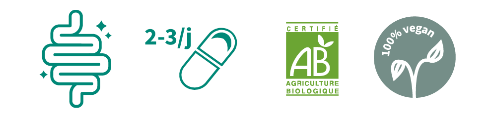Prendre 2 à 3 gélules par jour avec un grand verre d’eau au cours des repas.
